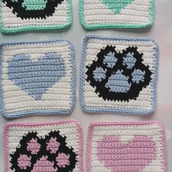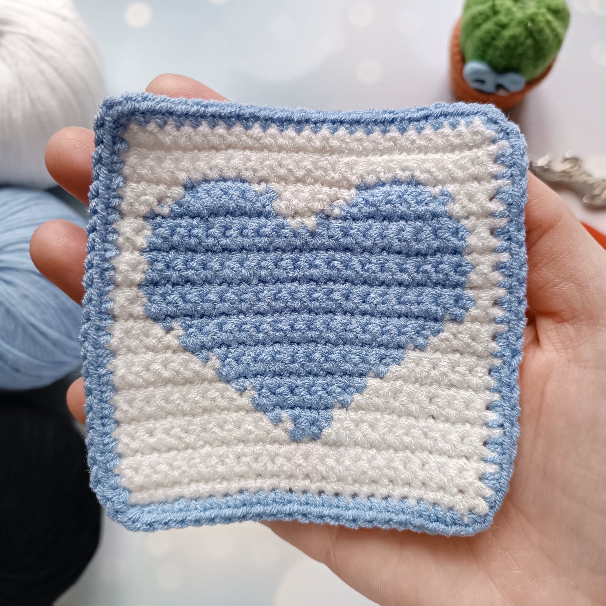The finished coaster using the materials stated in this pattern is ~3.5 inches / 9 cm in height and ~3.5 inches / 9 cm in width.